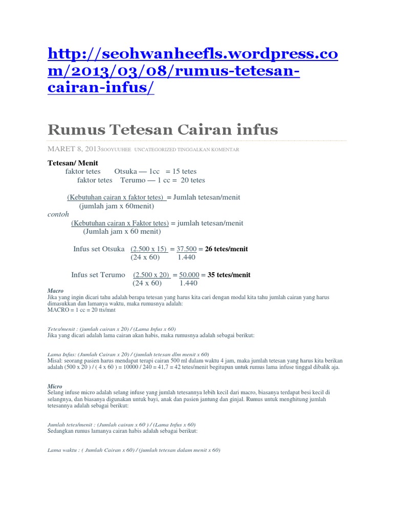 Doc Rumus Tetesan Cairan Infus Tatha Ryuka Academia Edu