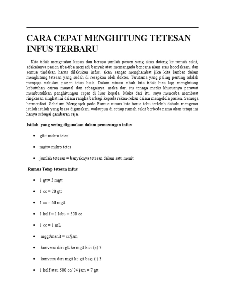 Cara Cepat Menghitung Tetesan Infus Terbaru Docx
